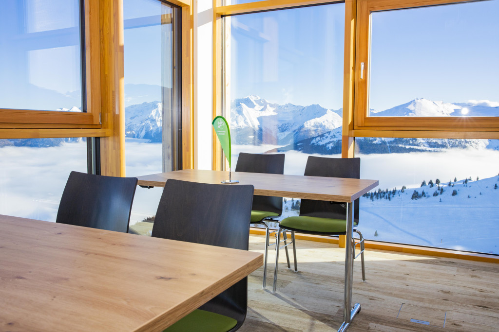 Wer Fortbildung und Natur verbinden möchte, nutzt den Seminarraum für bis zu 20 Personen – ausgestattet mit Internet, Beamer, TV und Flipcharts. Der perfekte Ort für Kurse, Workshops und Seminare mit Blick auf die Alpen.